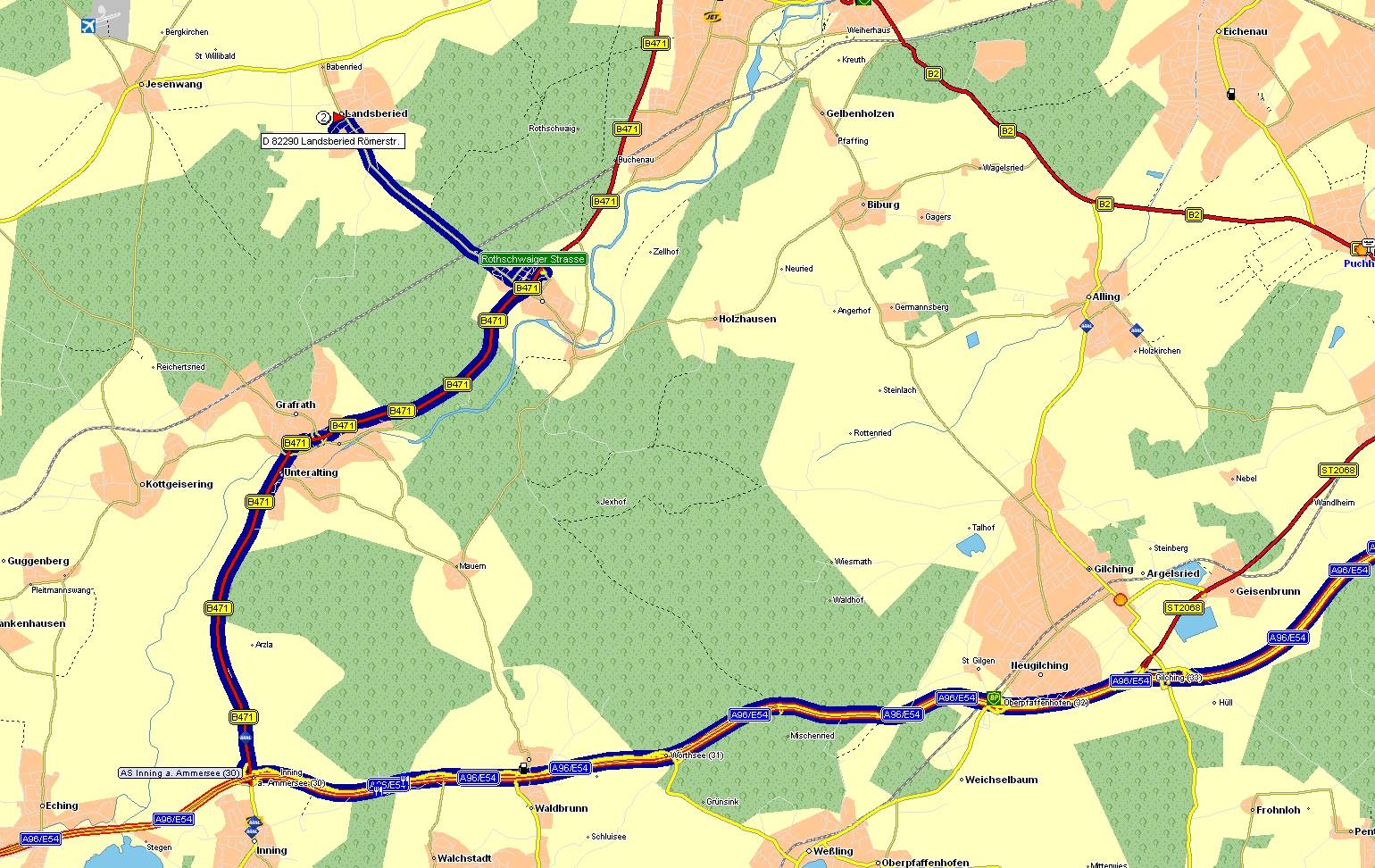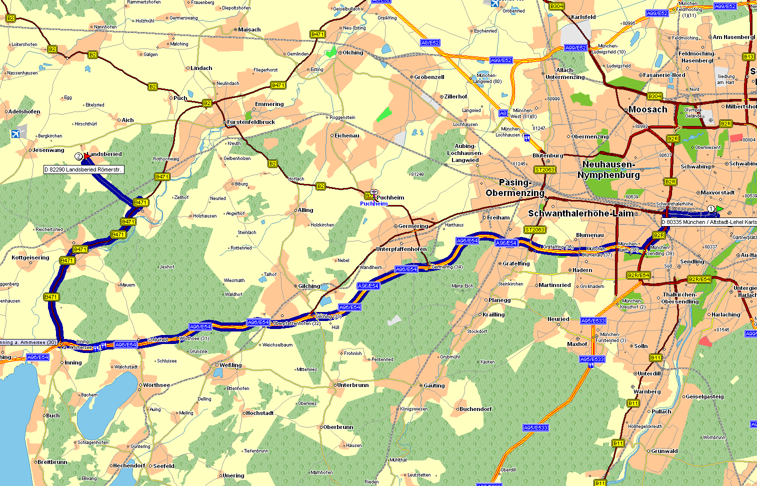 - bei AS Inning a. Ammersee (30) halb rechts abfahren auf B471