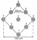 Die Stellfläche der 9 Kegel besteht - aus der Wurfrichtung gesehen - aus einem auf der Spitze stehenden Quadrat, dem Vierpaß. In diesem Vierpaß sind Standplatten eingelassen, auf die die Kegel gesetzt werden (Im Kegelboden ist eine leicht federnde Stahlkugel montiert, die genau in die Standplatte paßt). Alle Kegel haben Nummern und Namen: 2, 3: Vordere Damen 7, 8: Hintere Damen 4, 6: Bauer, Ecke 5: König 9: Hinterholz |